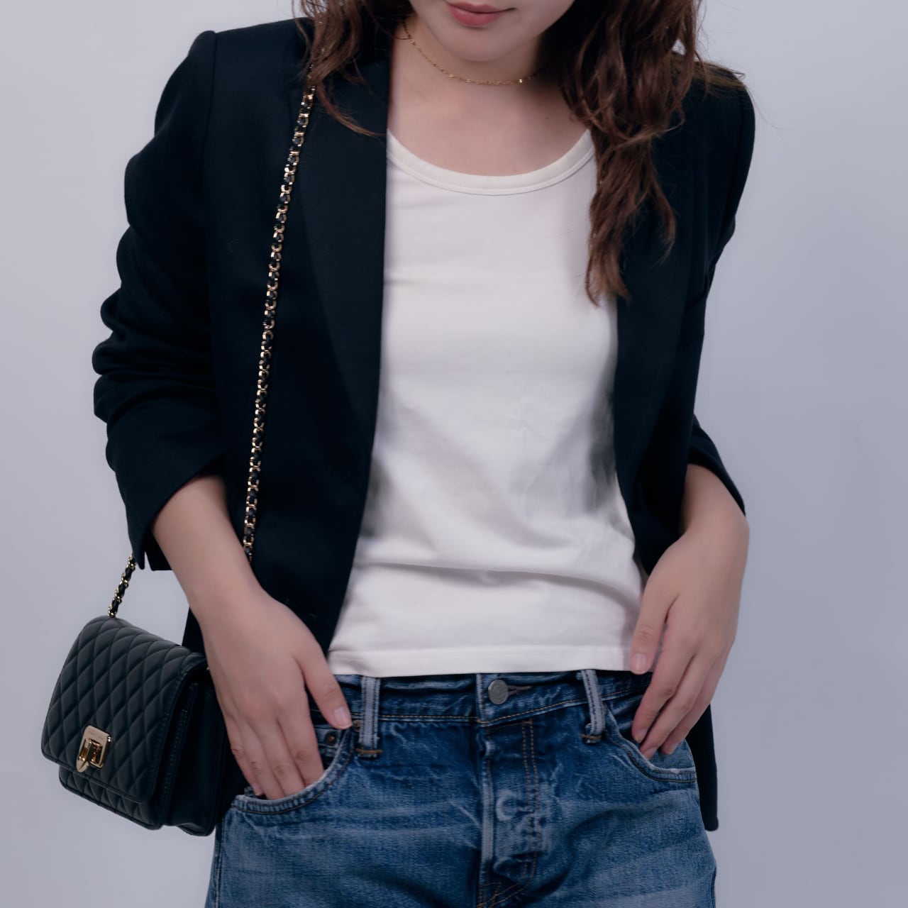 持ち前の明るさで、自然と周りを笑顔にさせてくれるあやのさんから受け継いだ、ジャケット。首元だけがコーデュロイ生地という遊び心が、カチッとした着こなしにさりげない抜け感を添えてくれます。袖を通すたび、今日の自分に自信が持てる一枚になりますように。