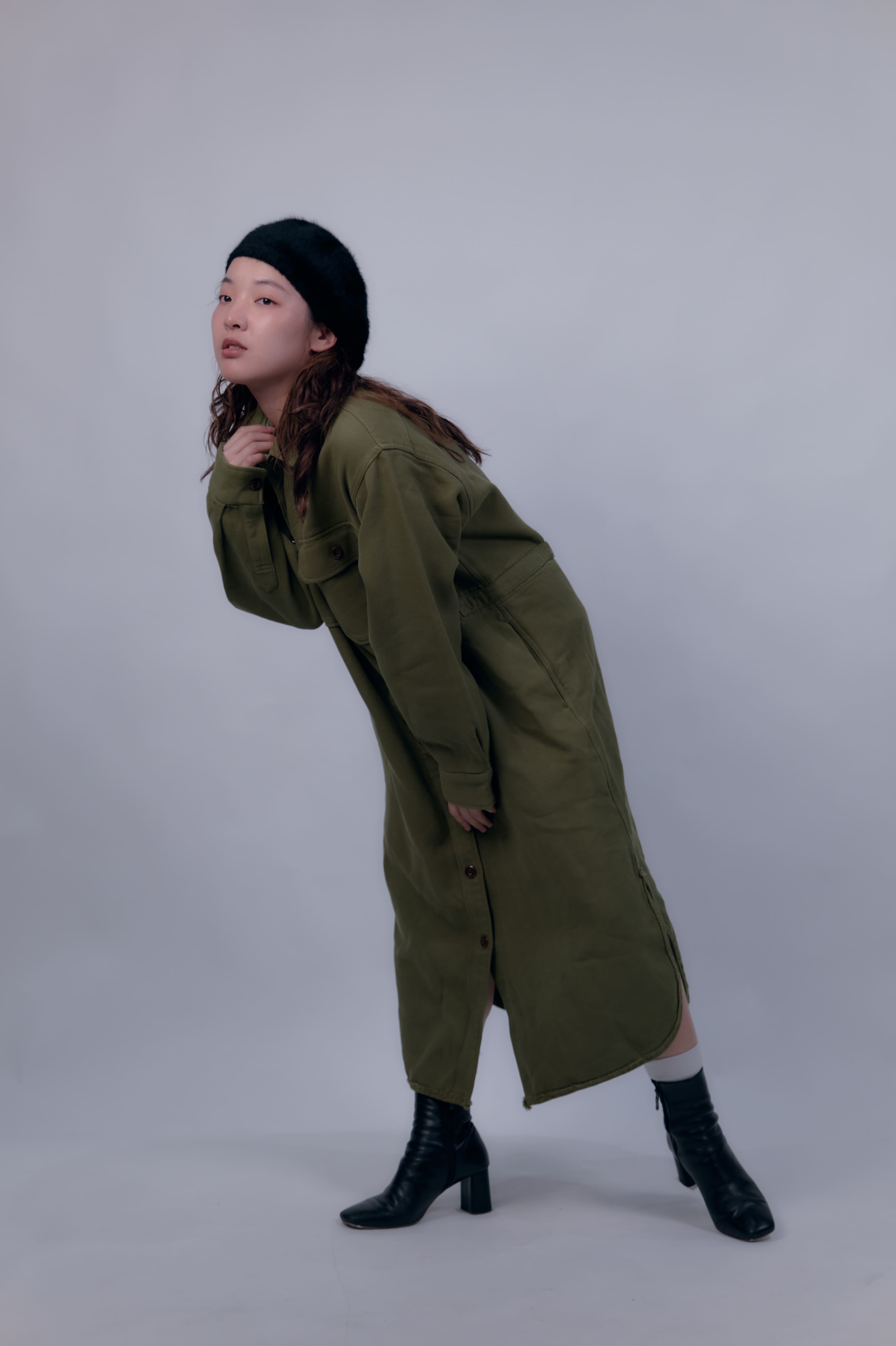 一緒にいるだけで笑顔になれるあやなさんから受け継いだシャツワンピース。厚みのある生地とやさしいシルエットが包み込んでくれるようで、羽織としてもワンピースとしても頼もしい一枚。日々を軽やかに過ごすあなたの味方になってくれる、2way仕様の万能ワンピースです。
