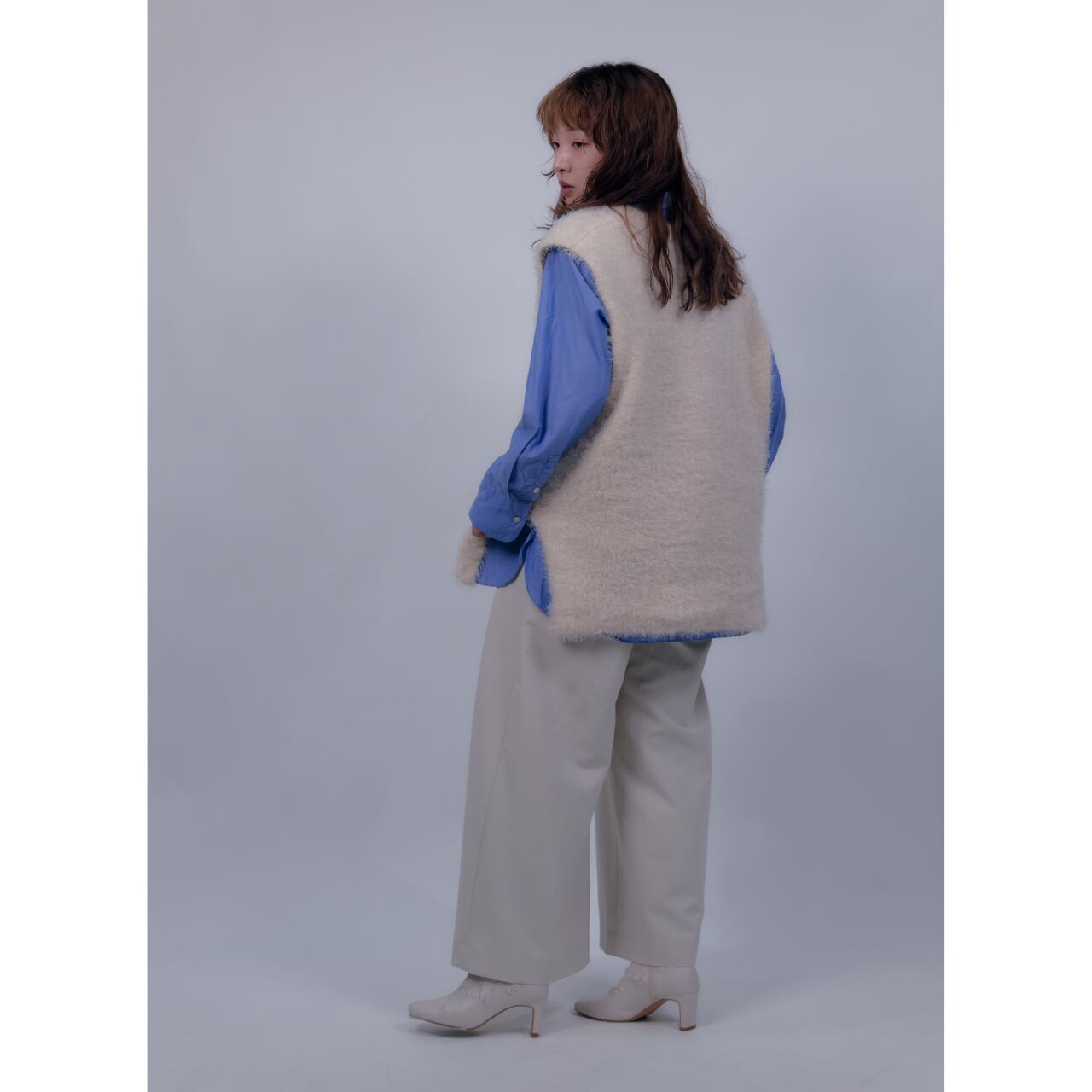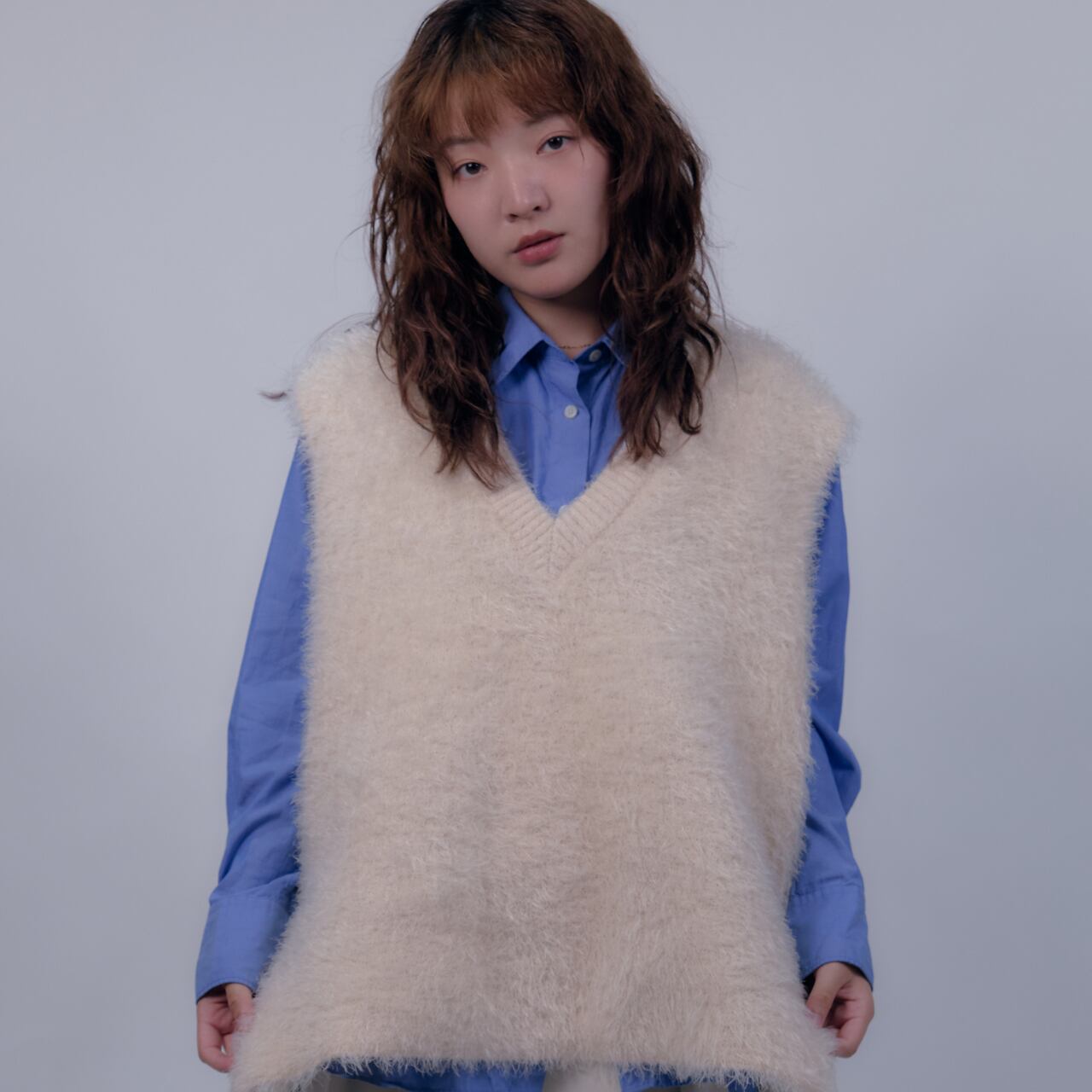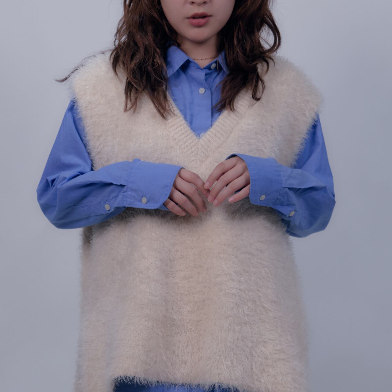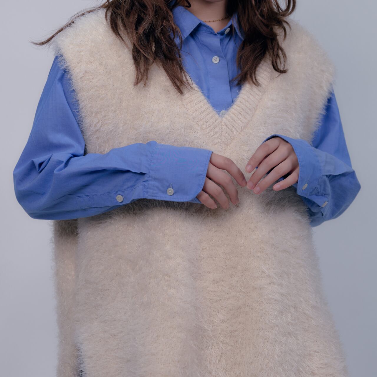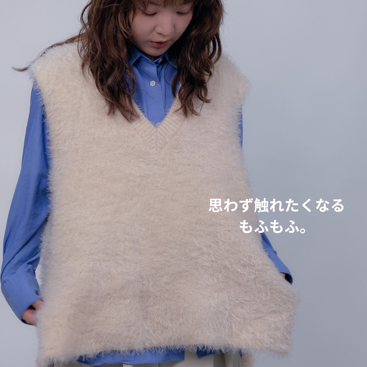 ふわふわな生地感に思わず触れたくなる一枚。シャツと合わせて大人っぽくきてもいいし、春先にはジャケットの下に一枚できても可愛い。抜群の存在感で、シンプルなスタイルにも温もりと遊び心をプラスしてくれます。着るだけで、季節の移ろいを楽しめる一着。