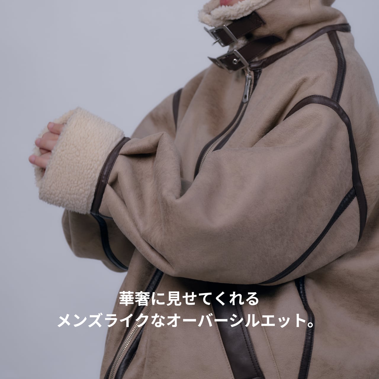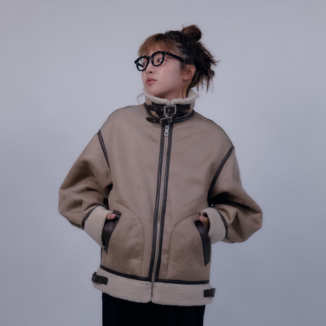 凛とした芯の強さと、まわりを自然と惹きつけるセンスを持つみずきさんから受け継いだ1着。思わず抱きしめたくなるようなボア素材が、やさしく体を包み込むボアジャケット。首元まで暖かいデザインで、冷たい風の日にも頼れる存在。